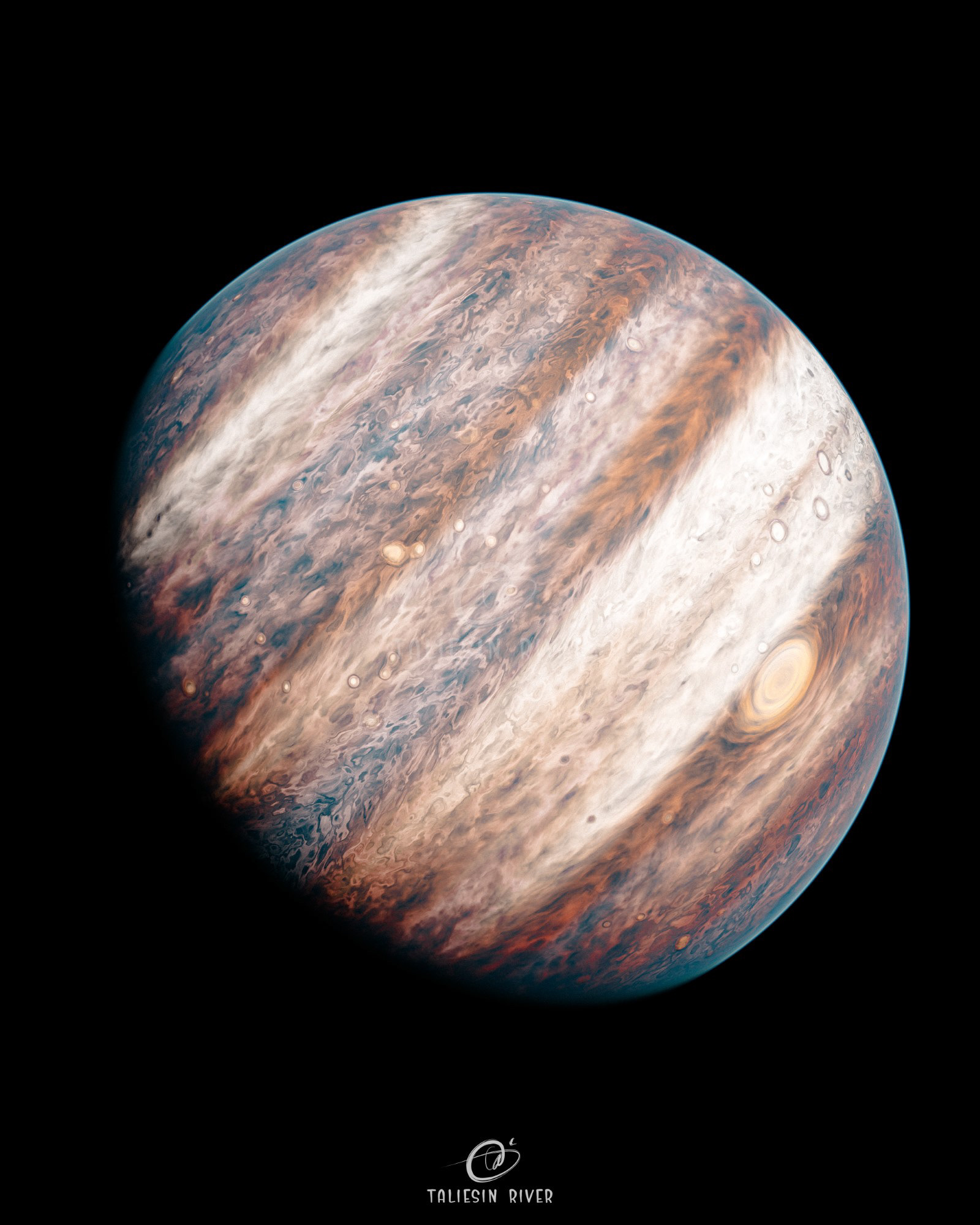 For the colours, several different sets of nodesĀ are used based on colours on Jupiter, which are Blended together based on other masks extracted from other parts of the node setup.