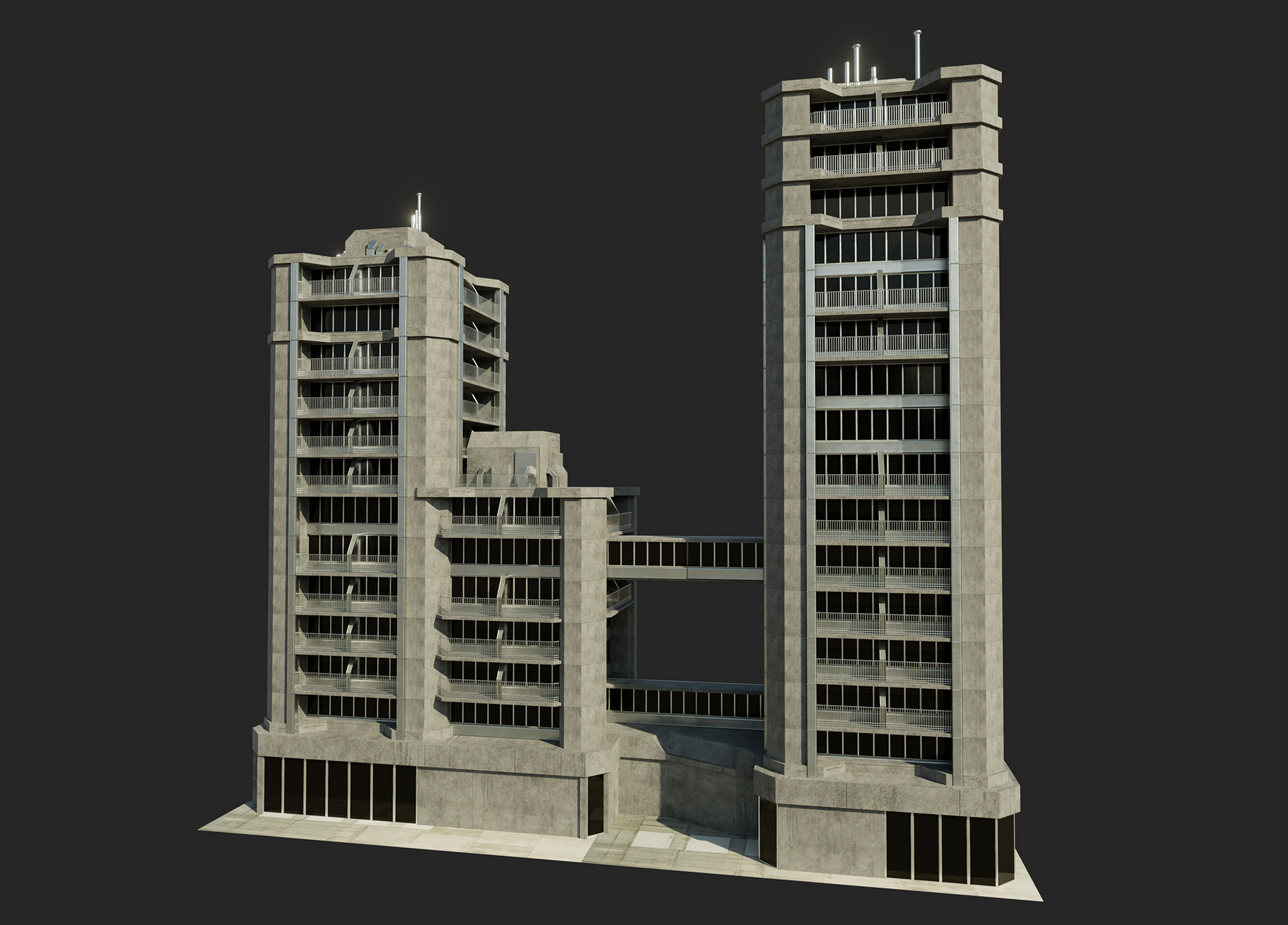 One 4k trim sheet used - 14k tris total in the model, with around 8 modular elements repeated throughout.
