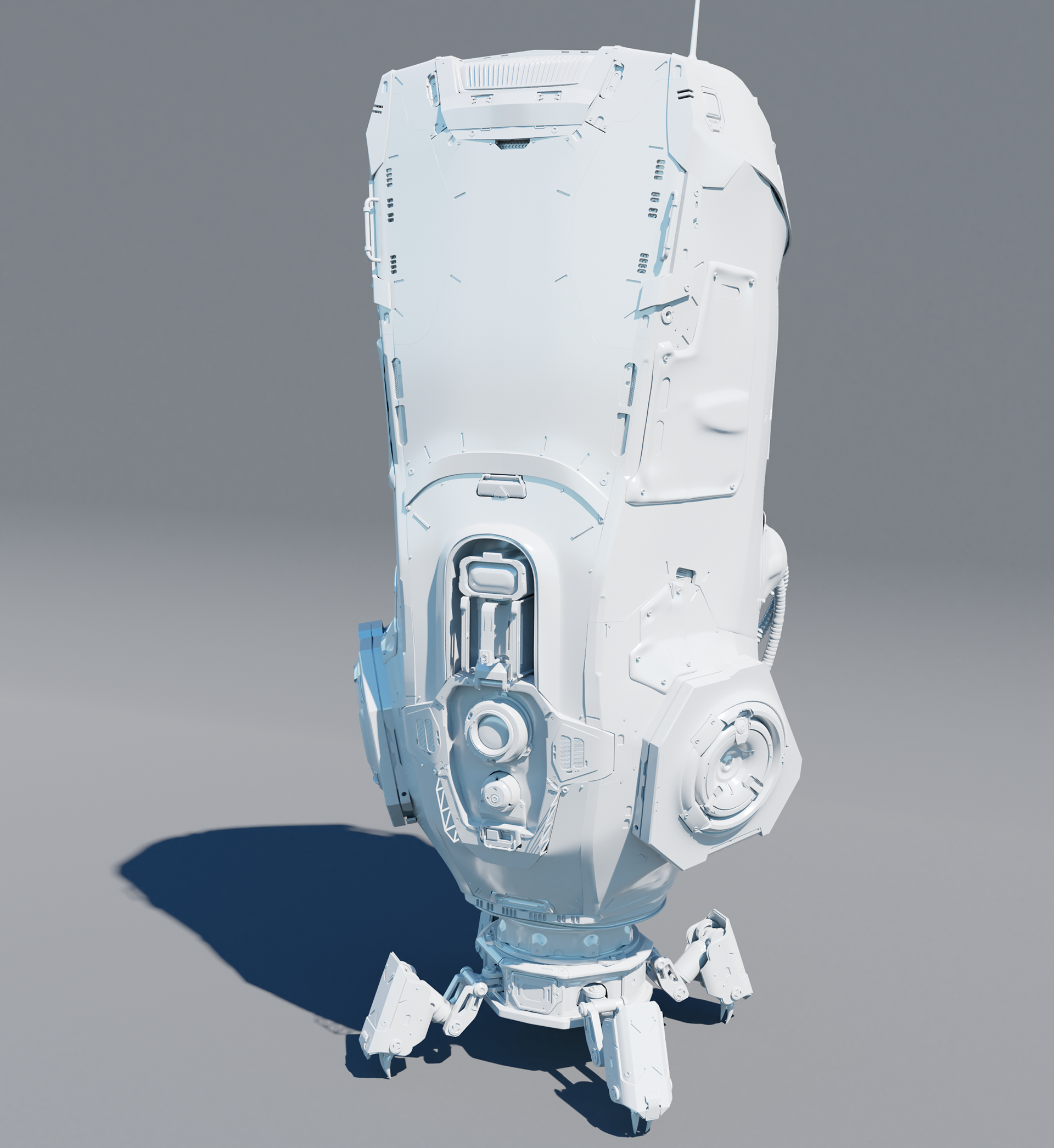 Spaceship and launch pad WIP models from an unfinished space animation project I worked on in 2021 to mid-2022